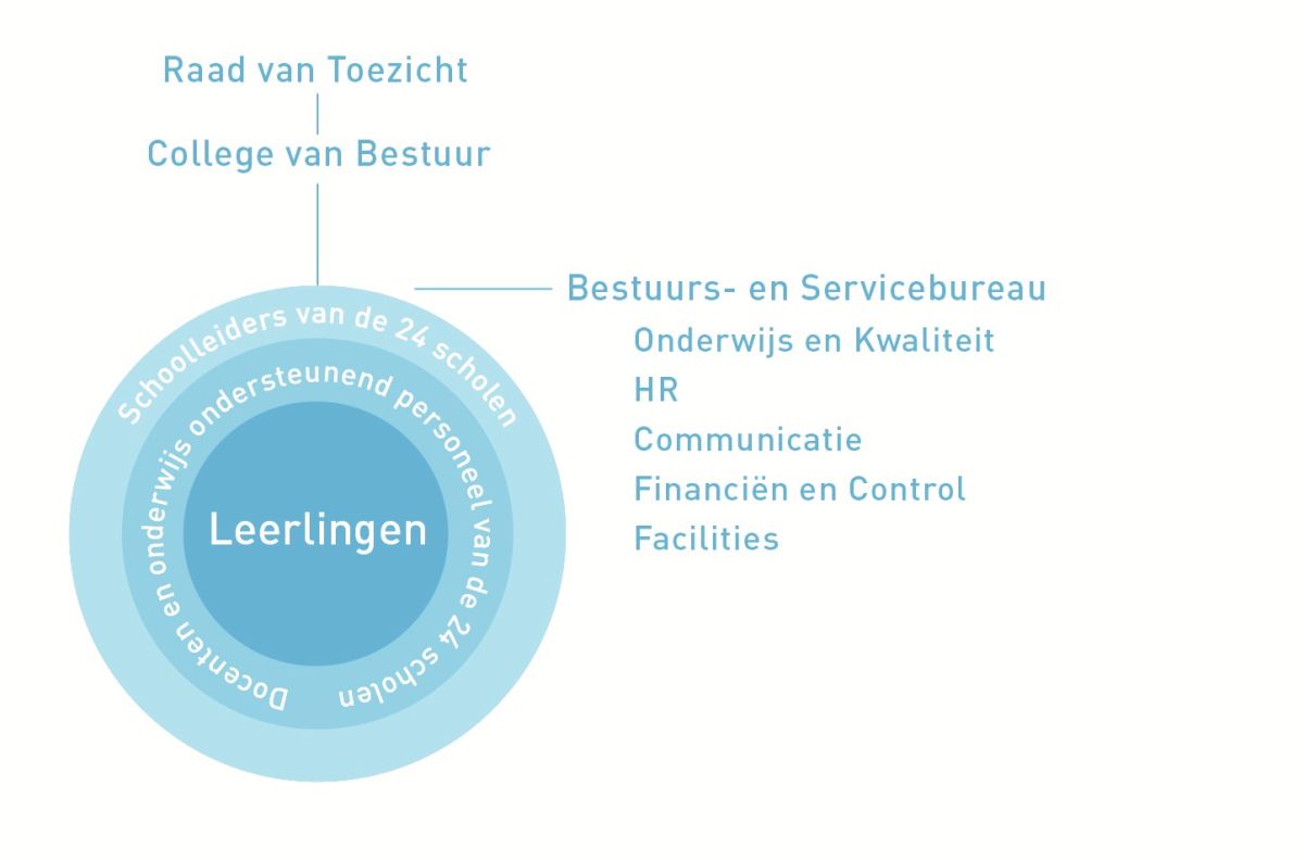 Het College van Bestuur (CvB) is het bevoegd gezag van de scholen en is eindverantwoordelijk voor de scholen en de stichting.Het CvB ontwikkelt de richting voor de onderwijsgroep, met als belangrijkste doel het optimaliseren van de brede talentontwikkeling van elke leerling én elke medewerker.